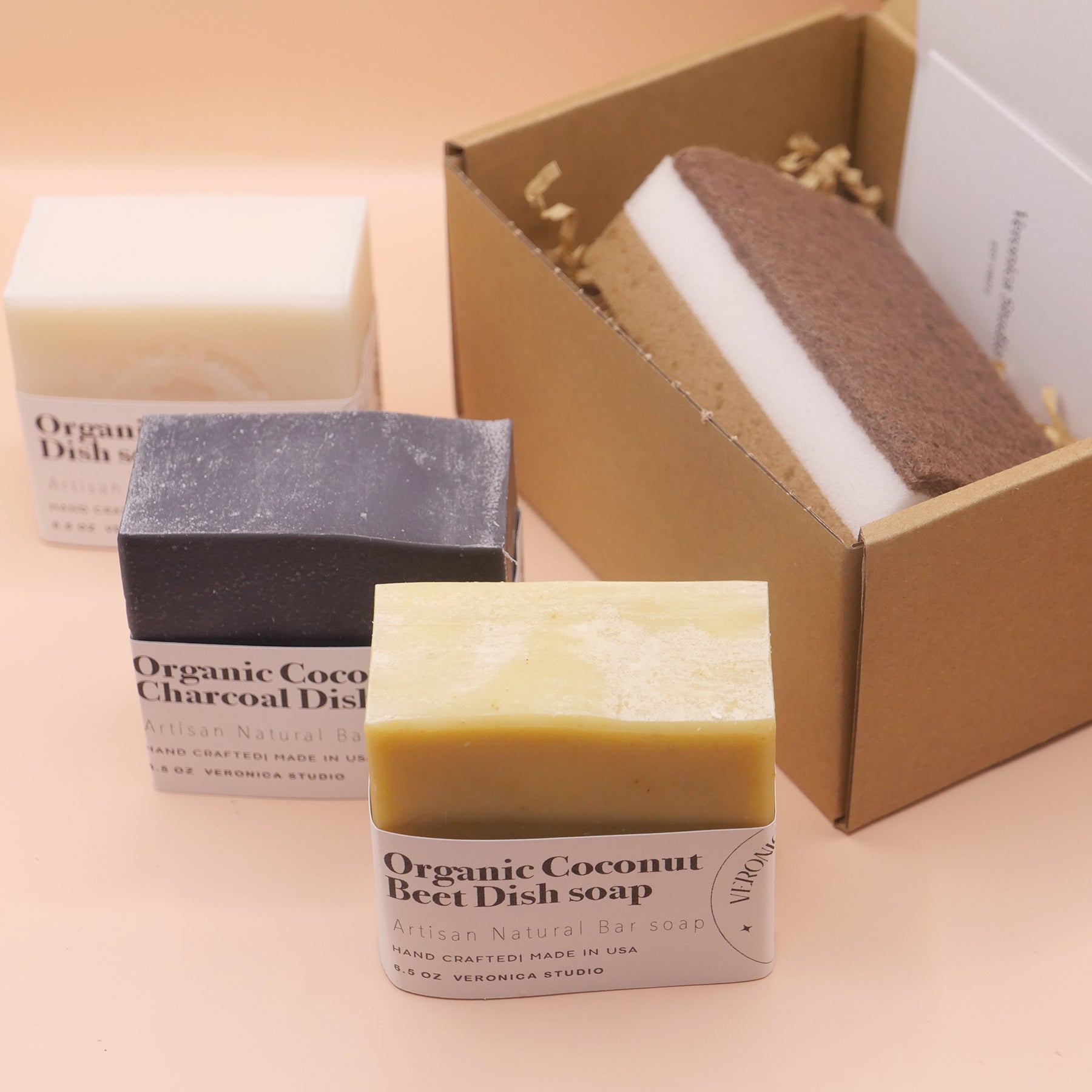 3 bar of Organic dish soaps + Sponge gift set