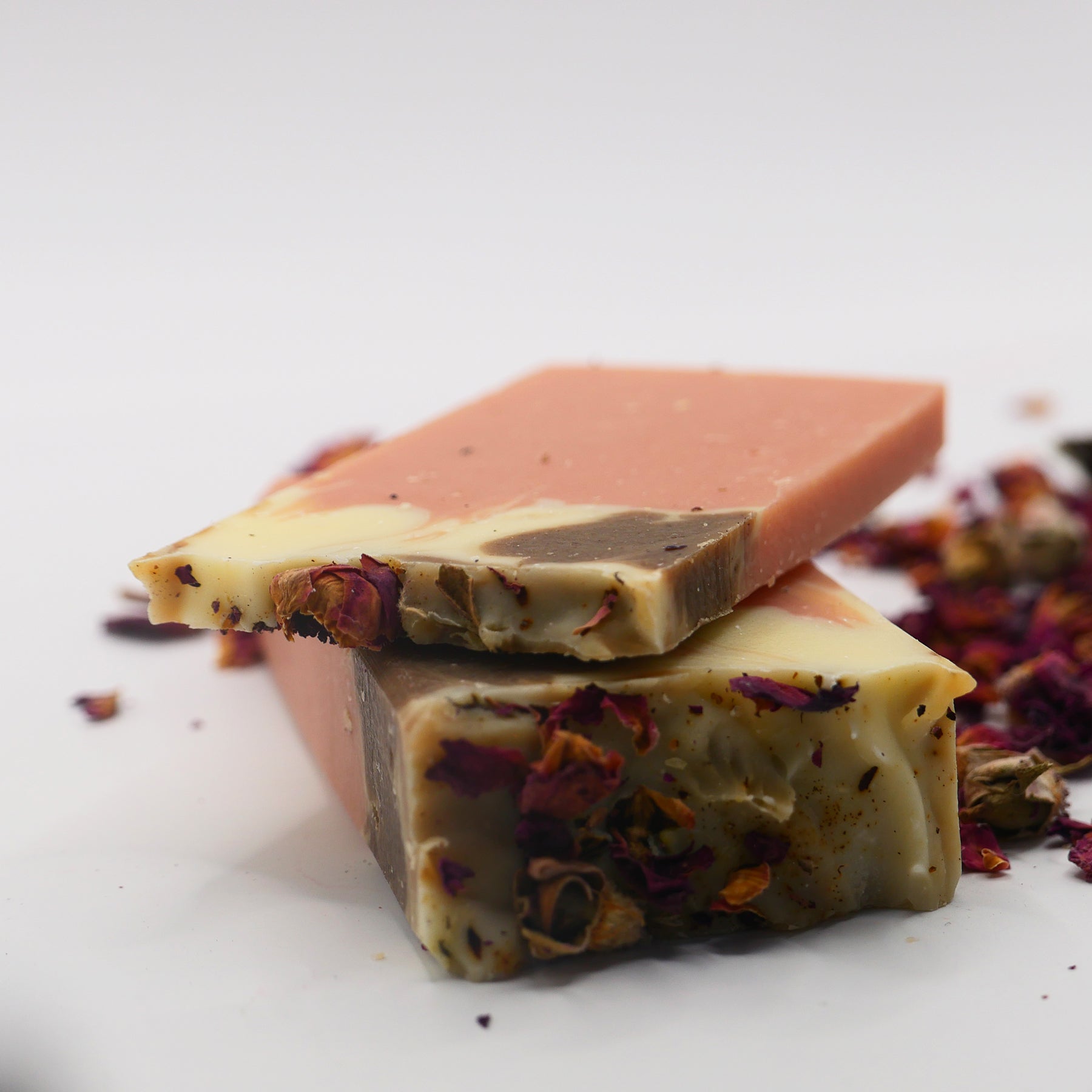 Our Rose Petal & Peony Bar enriches your skin with a luxurious combination of delicately scented shea butter and safflower oil, perfectly balanced with rose petals for an indulgent, sophisticated beauty ritual. Find peace and harmony in each bar's unique aromas, crafted to wrap you in its warming embrace and soothe away your daily stress.