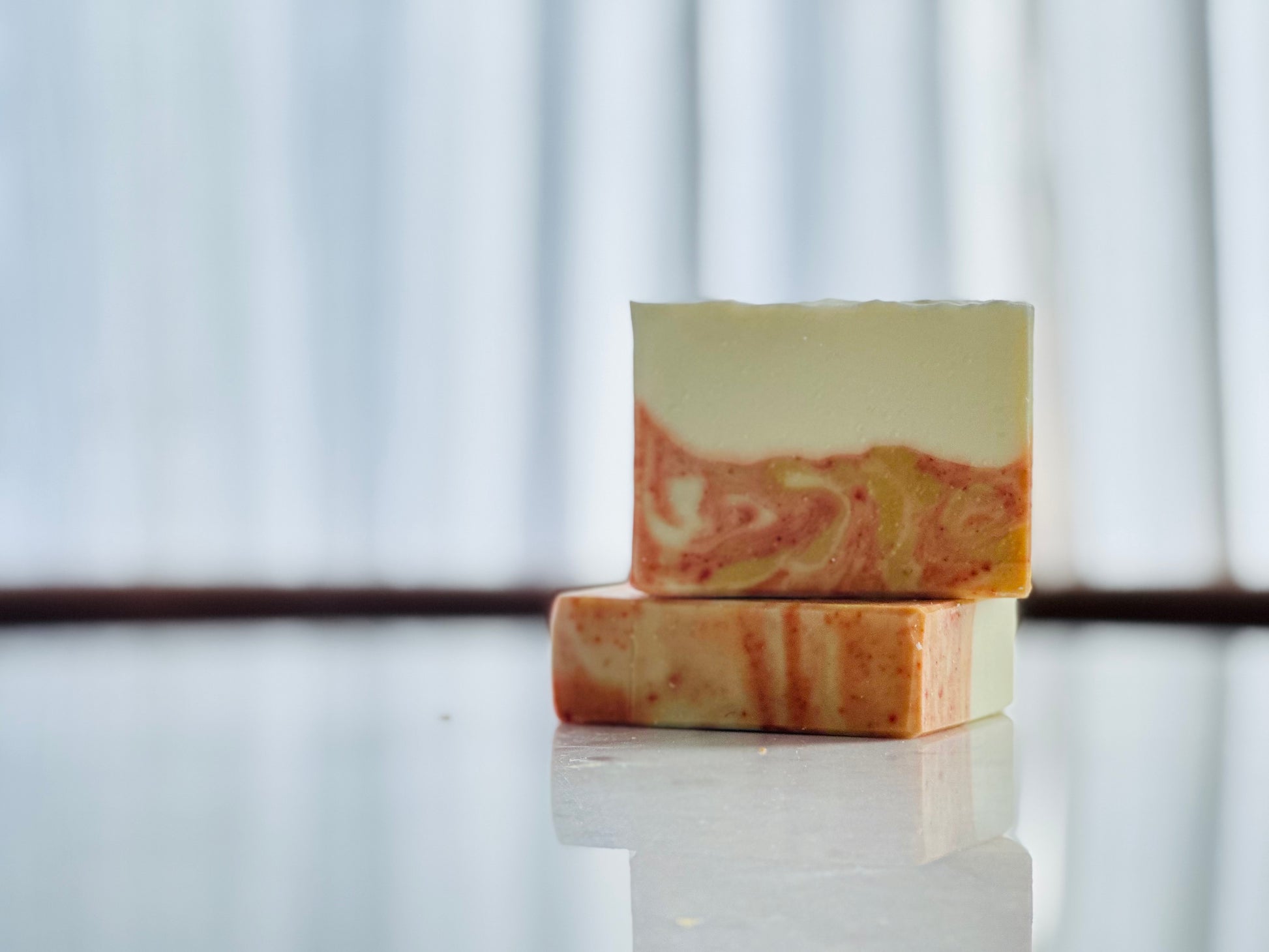 Coconut oil, Palm oil, Indulge in the exhilarating experience of Orange Marble soap, made with the dynamic combination of cocoa butter, avocado and olive oils. Infused with the journey of corn oil and the fiery kick of pumpkin and paprika powder, this soap boasts the invigorating scent of lime oil and the intense nourishment of calendula water. Don't miss out on this wild adventure for your skin!