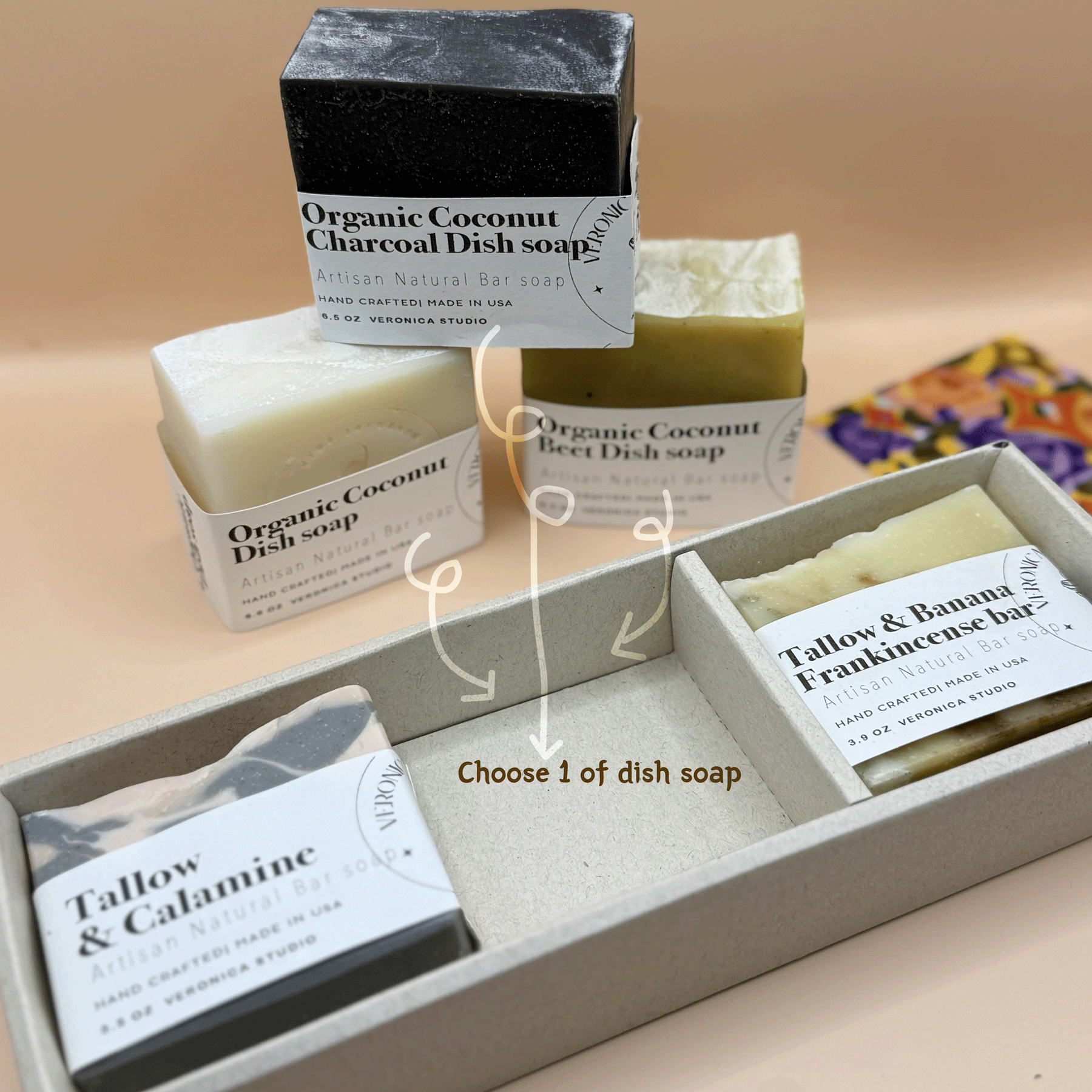 칼라민 탈로우 비누와 탈로우 바나나 프랑킨센스 비누가 포함된